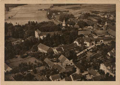 Ballonaufnahme vom Schloss Wiesenburg. Gut zu sehen der damalige Gutshof.