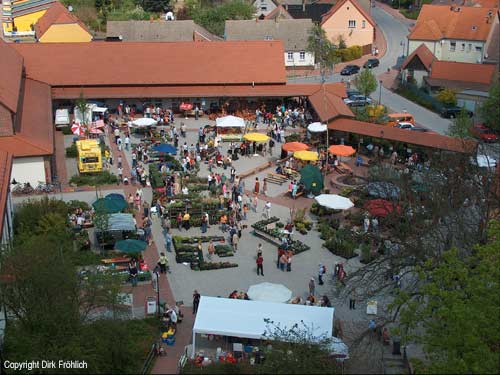 5.Wiesenburger Blumenmarkt auf dem Goetheplatz, Blick vom Schlossturm.