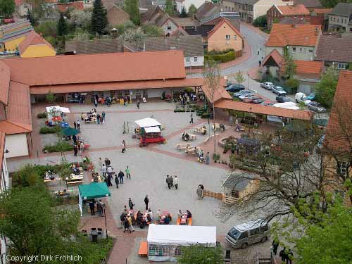 2.Wiesenburger Blumenmarkt auf dem Goetheplatz, Blick vom Schlossturm