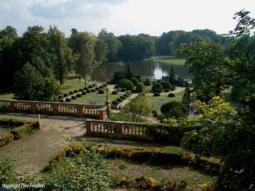 Vom kleinen Balkon, auf der Südseite, hat man diesen Blick auf den Schlosspark.