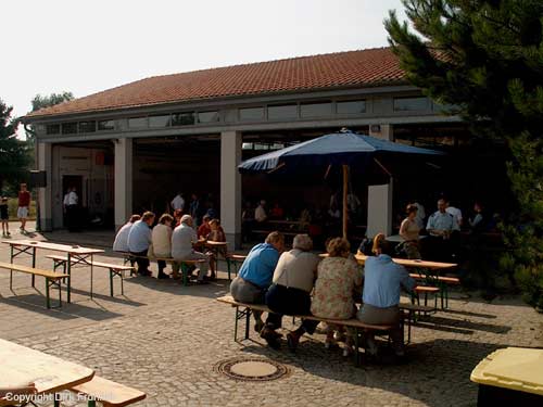 Vor und auch im Feuerwehrhaus saß man gemütlich und hörte der Blasmusik zu.