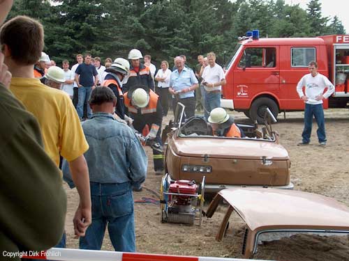 Vorführung einer Personenrettung an einem Wartburg (Bild1)