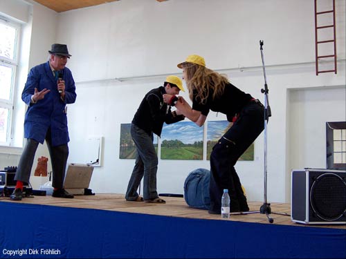 „Theater Match“ ImprovisAktionsTheater mit 2 Teams aus dem Publikum Moderiert von René Zind, dem MitSpielMann