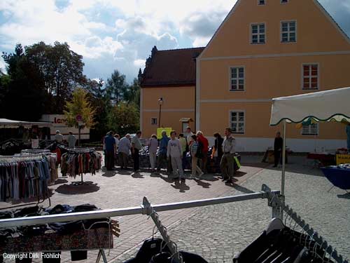 Marktschreier auf dem Goetheplatz in Wiesenburg im August 2003