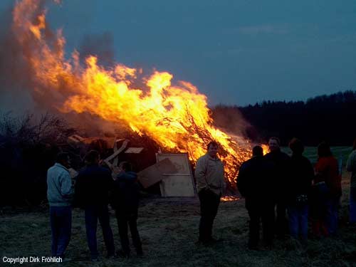 Vom Wind angetrieben, brennt das Holz schnell ab.