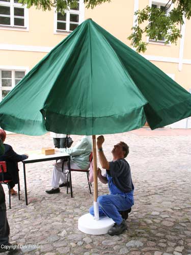 Dank den Mitarbeitern des Bauhofs, für das Aufstellen der Bänke, Tische und wie hier der Sonnen- bzw Regenschirme.