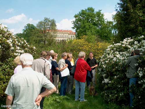 Zur Rhododendronblüte führte Landschaftsarchitekt Ulrich Jarke, etwa 25 Interessierte durch den Park Wiesenburg